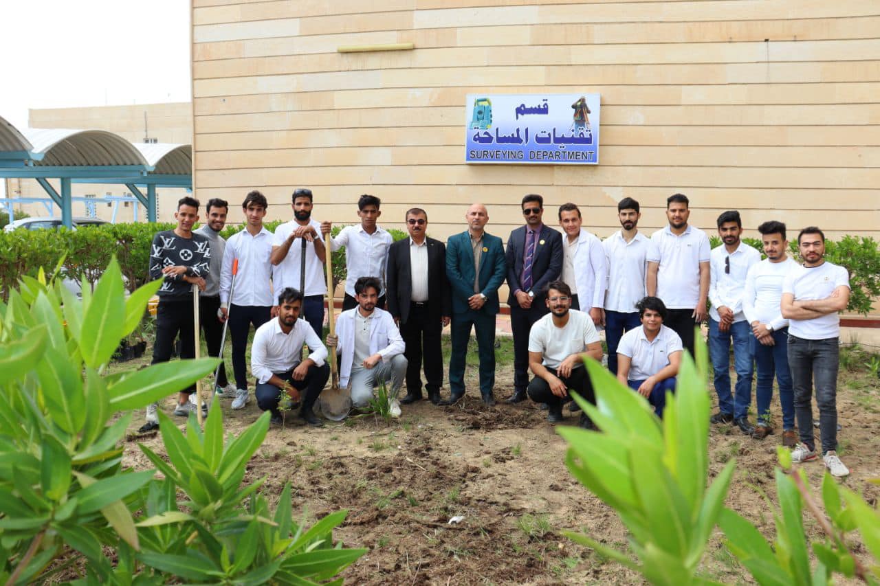 برعاية السيد رئيس الجامعة التقنية الجنوبية المحترم، وتوجيه مباشر من السيد عميد المعهد التقني في البصرة المحترم، باشرت كوادرنا، المتمثلة في الكادر التدريسي والفني وطلبة القسم، بحملة تشجير شملت الحدائق الأمامية لقسمي المساحة والمدني، بهدف خلق بيئة جميلة. وتعزز مثل هذه الحملات الوعي البيئي لدى الطلبة، وتسهم في خلق بيئة جميلة ومريحة لهم من خلال زيادة المساحات الخضراء. ومن الله التوفيق. علي حسين علي، رئيس قسم المساحة.