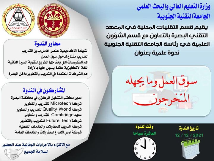 برعاية السيد عميد المعهد التقني في البصرة، نظم قسم تقنيات إدارة المواد ورشة عمل بعنوان “مفاهيم وأساليب الجرد المخزني”. قدم الورشة المحاضر إبراهيم محمد سعيد حيث تناول فيها أهم المفاهيم والأساليب الحديثة في عملية الجرد المخزني موضحاً أهمية هذه العملية في الحفاظ على دقة البيانات المخزنية وتقليل الأخطاء وتحسين كفاءة العمليات.