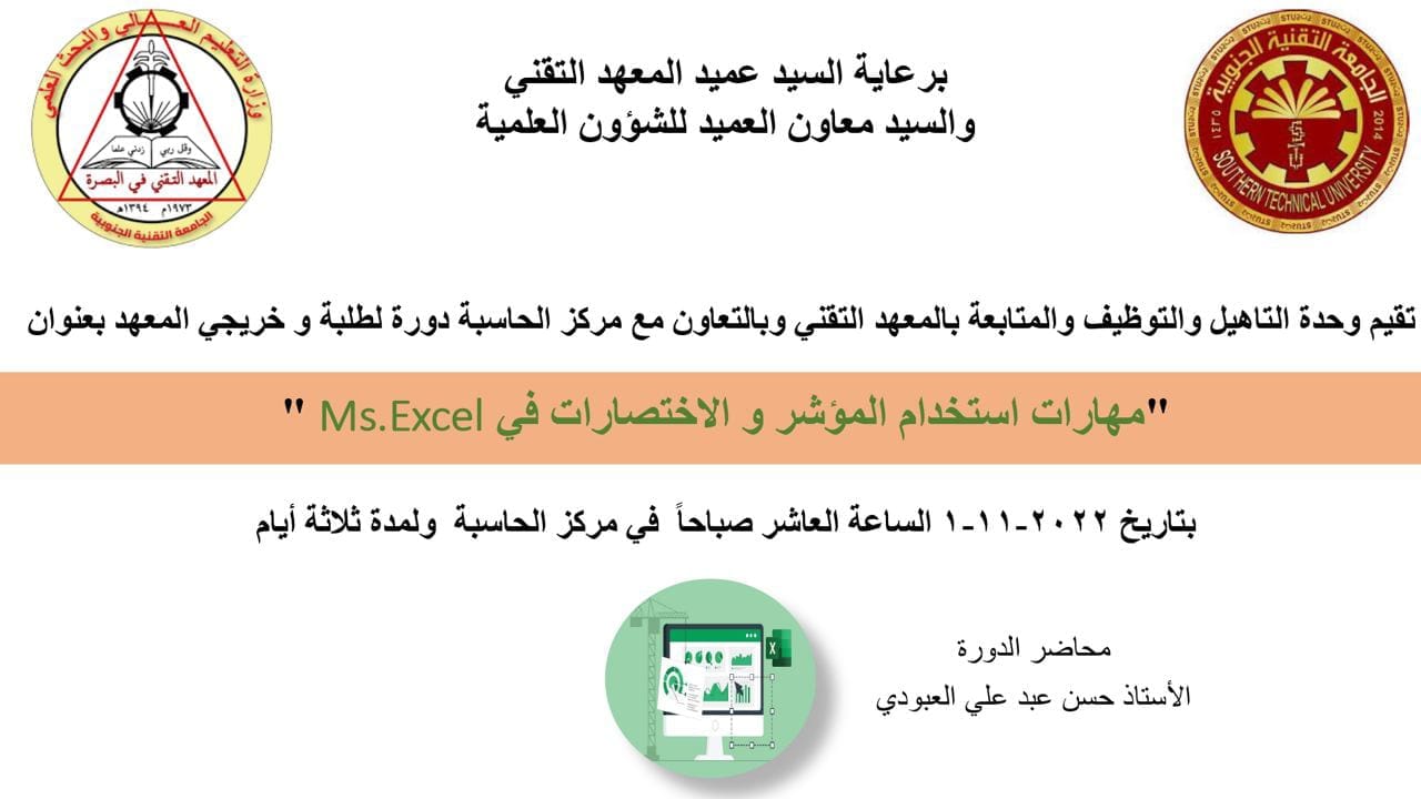 نظم مركز التعليم المستمر في الجامعة التقنية الجنوبية دورة تدريبية عن المكتبة العراقية العلمية الإفتراضية IVSL. وتضمنت الدورة التي حاضر فيها التدريسية في قسم ادارة المكتب بالمعهد التقني البصرة السيدة ساره عبد الاله الجاسم تطور المكتبة الإفتراضية في ظل تطورات تكنولوجيا المعلومات والاتصالات الحديثة، وأهمية […]